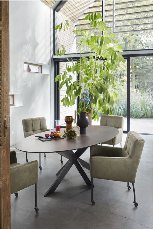 / Eetkamerstoel Janinto groen microleder